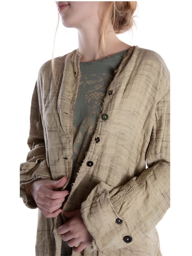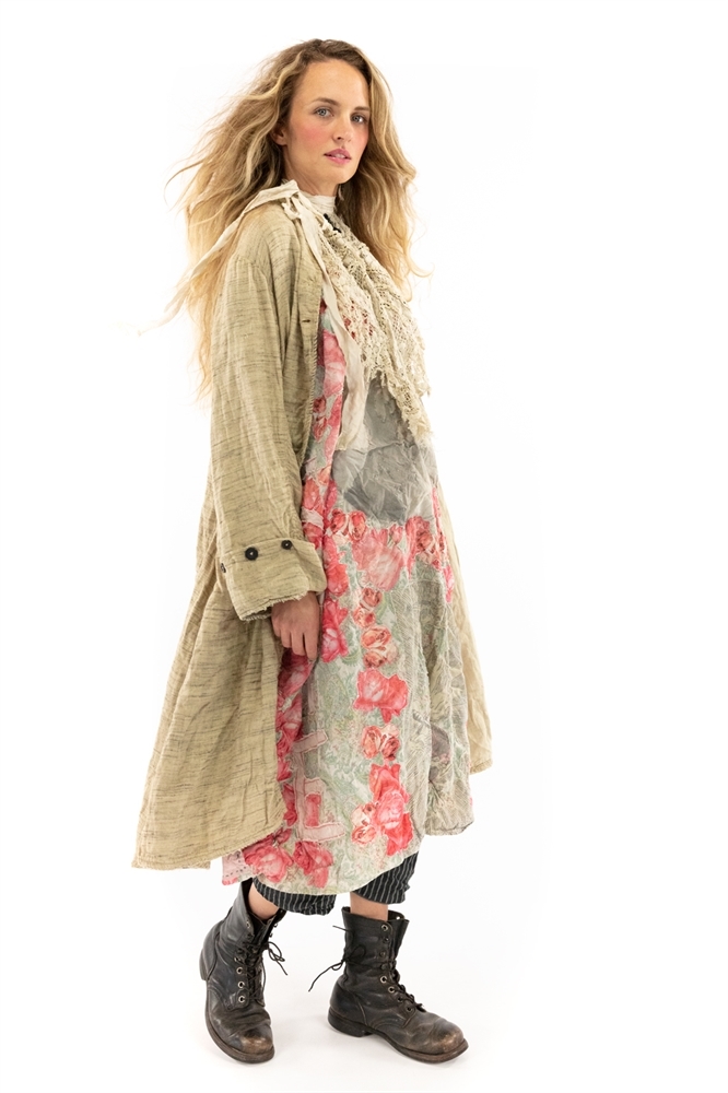 This is a Magnolia Pearl Brand piece worn by a Magnolia Pearl Creative Team member over the span of months/years. We have only listed items in Excellent to Good Used Condition, and have investigated each piece to the best of our abilities to discern condition & disclose any stains or spots of wear. All items have been thoroughly hand-laundered and dried in the sun & carry no smoke nor pet odors nor unhygienic stains. We recommend no machine washing or drying. Some designs were put into production, others are production samples - all are long-sold out. Price has been determined by considering the original retail price of the garment, its current condition and overall rarity.