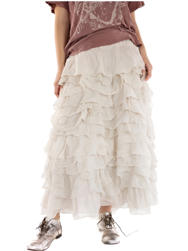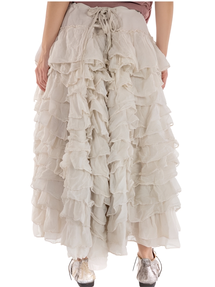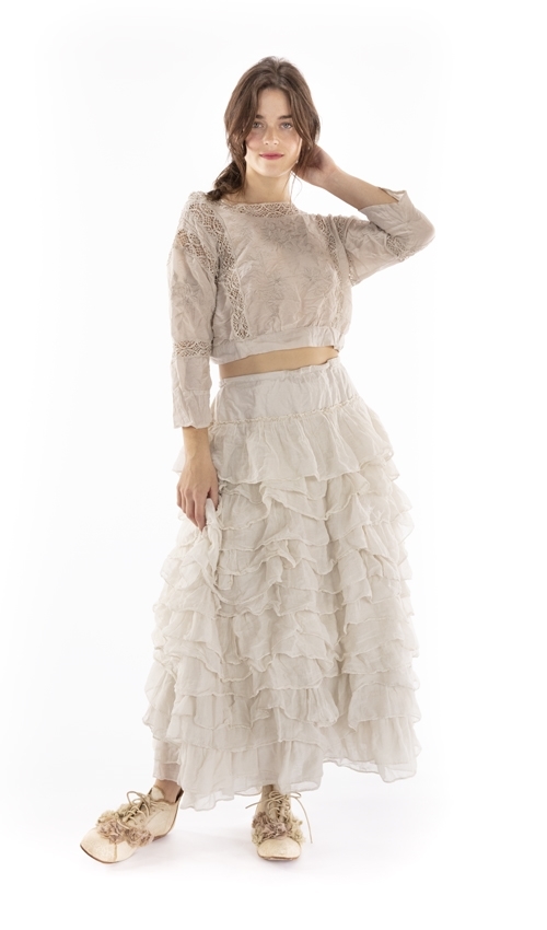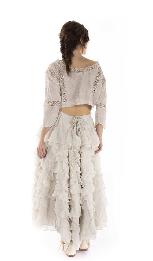 This is a Magnolia Pearl Brand piece worn by a Magnolia Pearl Creative Team member over the span of months/years. We have only listed items in Excellent to Good Used Condition, and have investigated each piece to the best of our abilities to discern condition & disclose any stains or spots of wear. All items have been thoroughly hand-laundered and dried in the sun & carry no smoke nor pet odors nor unhygienic stains. We recommend no machine washing or drying. Some designs were put into production, others are production samples - all are long-sold out. Price has been determined by considering the original retail price of the garment, its current condition and overall rarity.