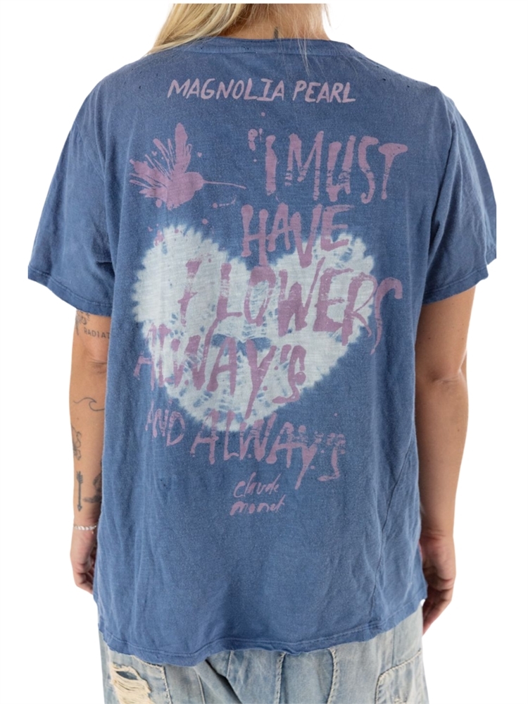 Tie-Dye Heart, Printed Hummingbird and Quote, “I must have flowers, always and always. - Claude Monet” on Back