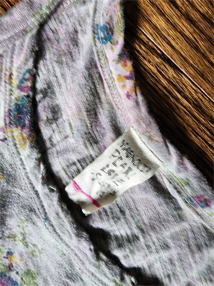 Color is "pressed flowers", a light lavendar with floral pattern, bleached-looking colors a bit washed out looking intentionally