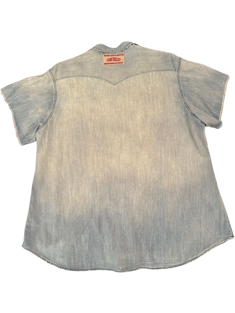 Magnolia Pearl Lightweight Cotton Denim Workshirt. Can be dressed up or down with a white tank and worn as a layering piece or jacket. So lightweight, soft and versatile!