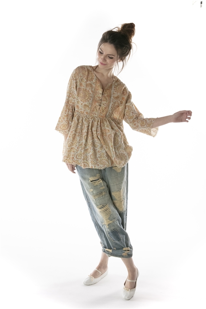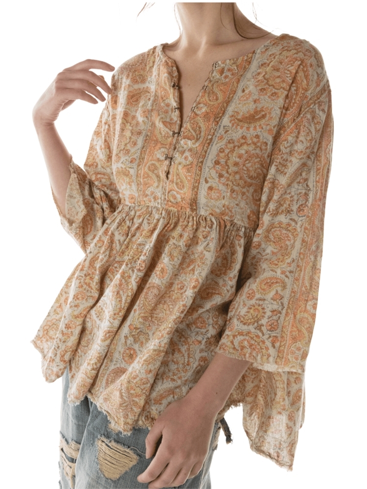 Orange/yellow/brown paisley print tunic