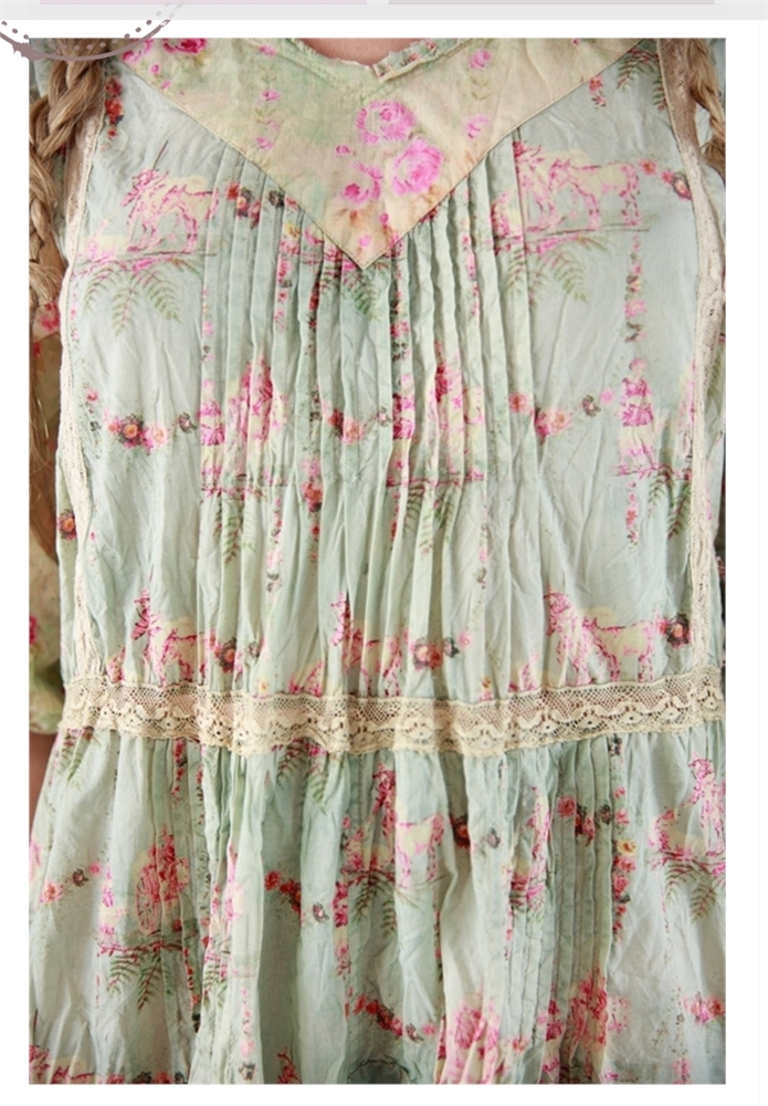 Piecewise Pastoral Toile Print with Spring-Green Overdye Floral Print Sleeves