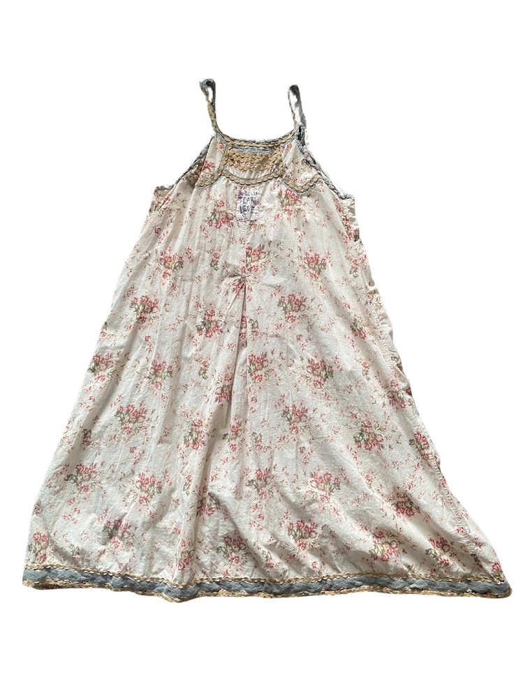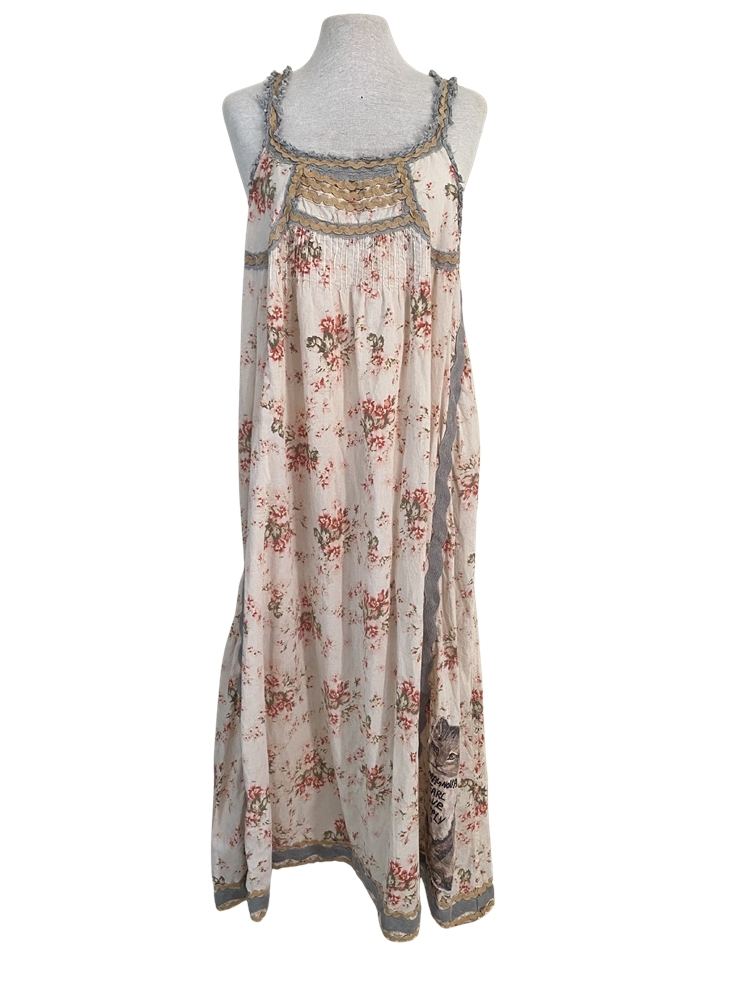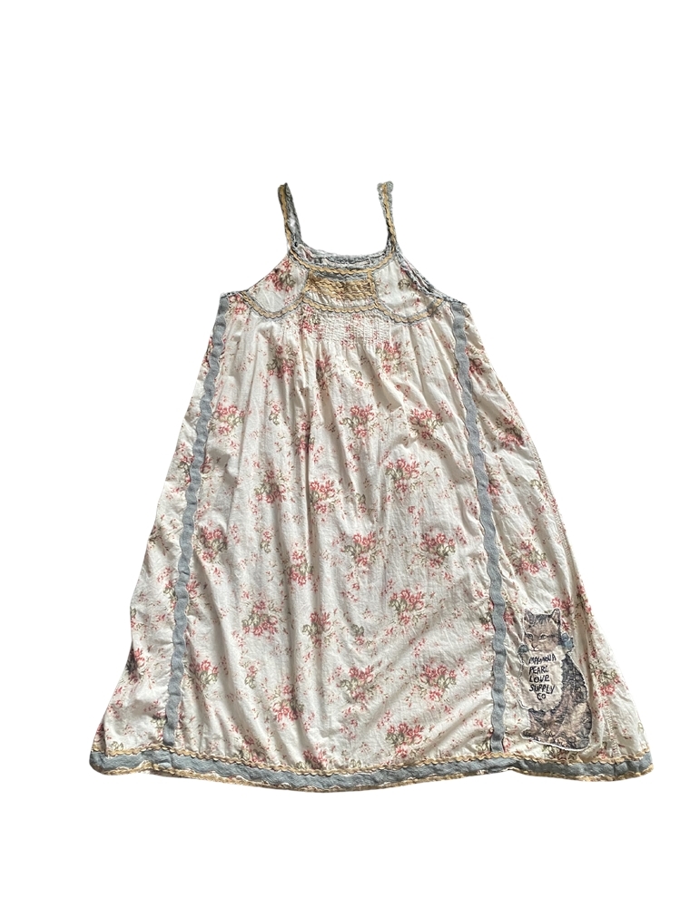 New with tags cotton floral print Clementine Slip with Ric Rac trim, Adorable Kitten Appliqué. This dress is whimsical & beautiful!