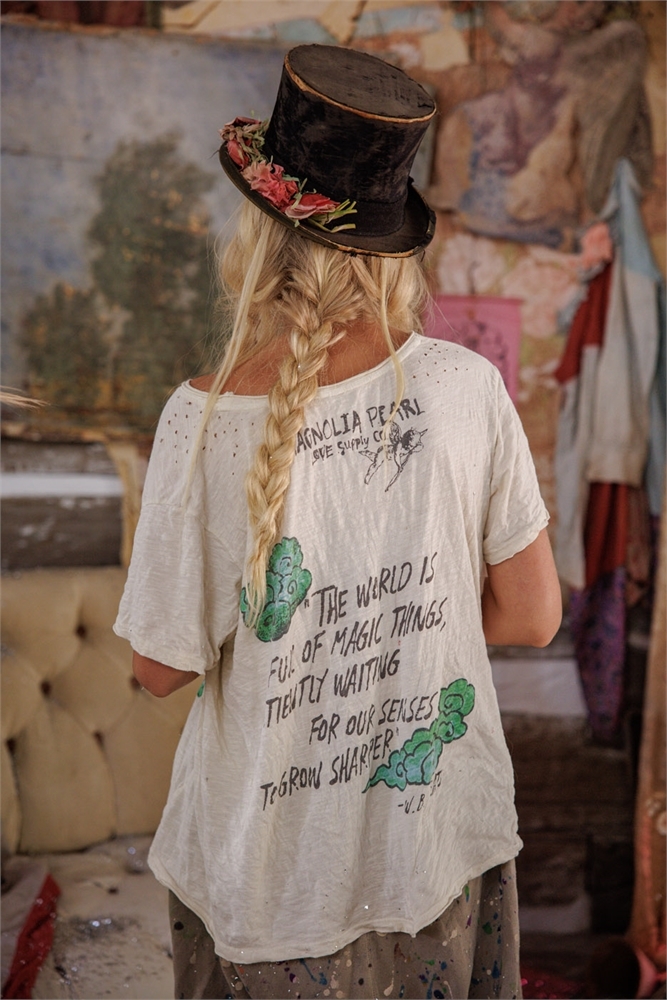 Hand-Fading & Hand-Distressing (small holes at shoulders, neckline & hems)