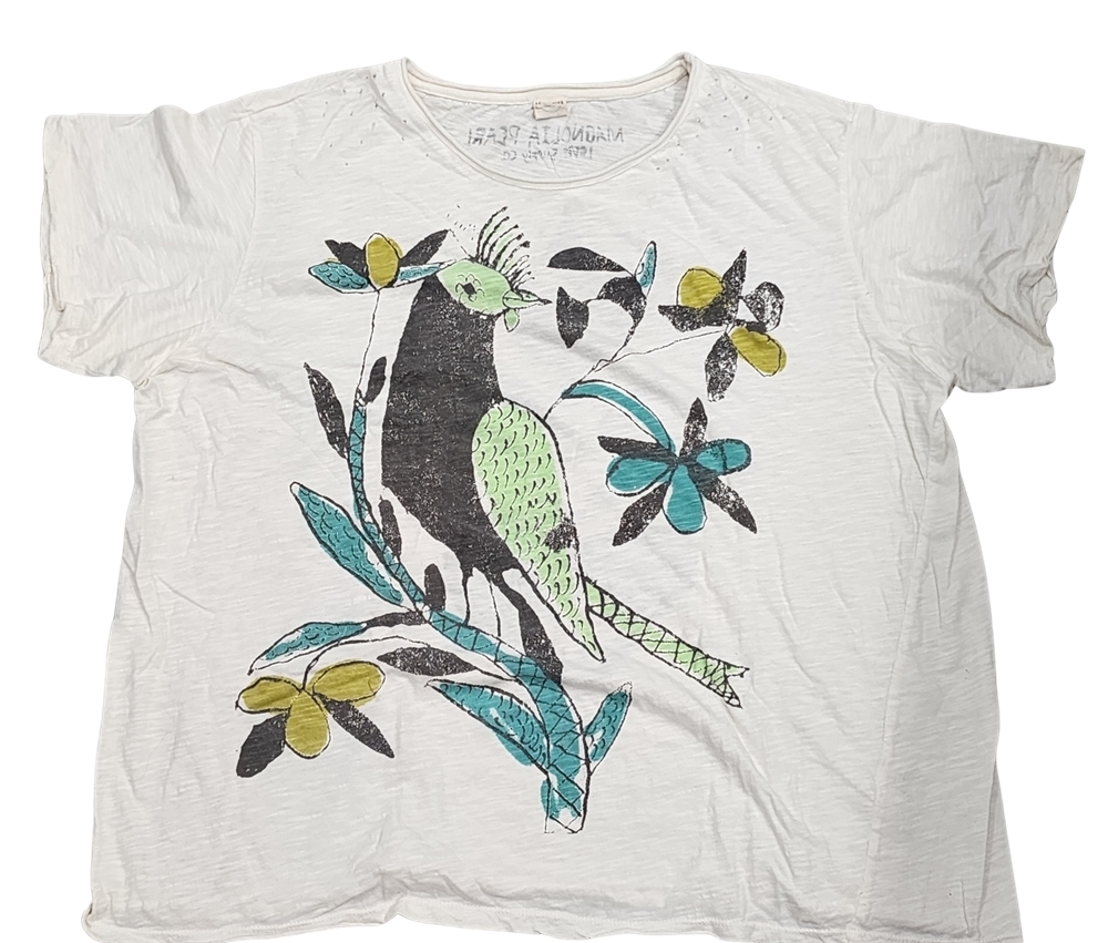 Hand Fading and Distressing (small holes) at Neckline, Shoulders & Hems