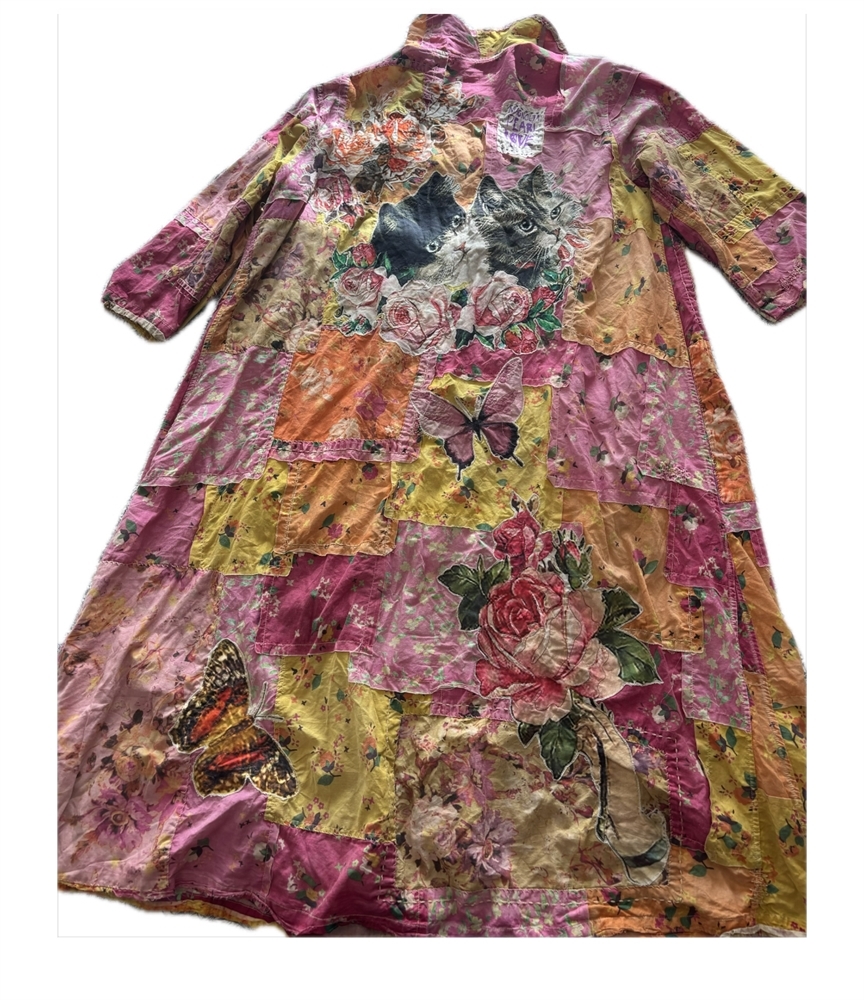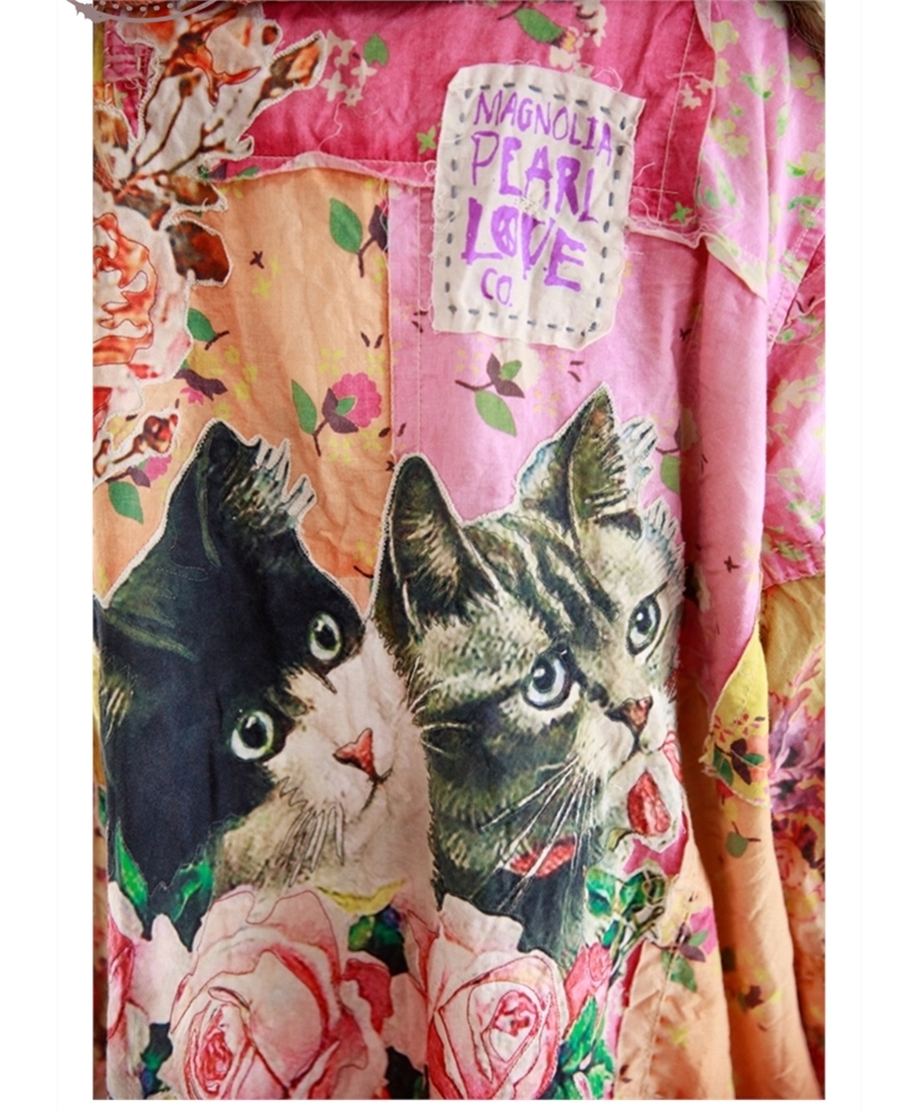 Appliqué Roses, Butterflies, Kitties Metal Snaps Down Front