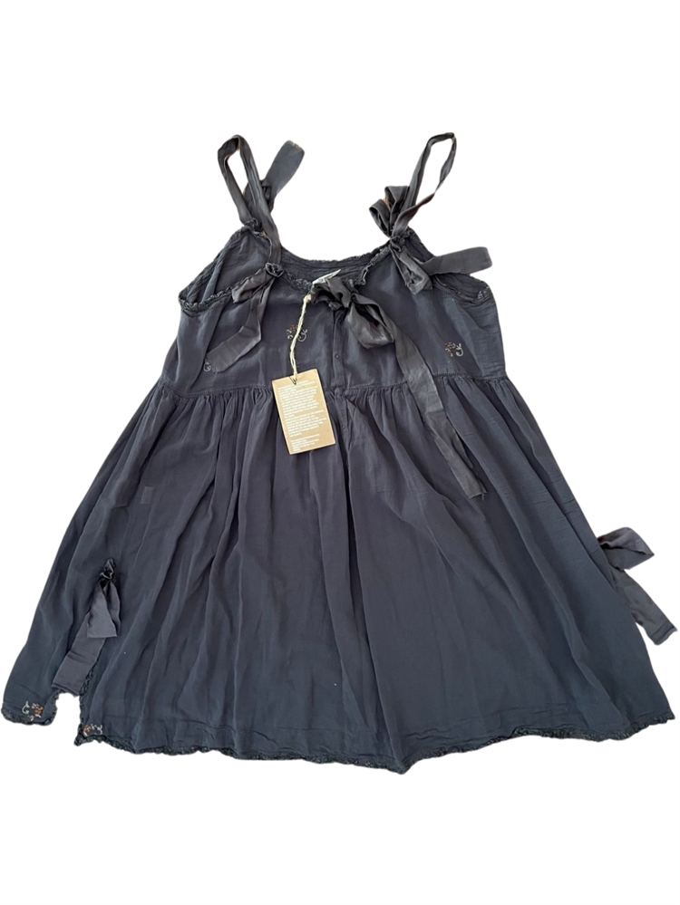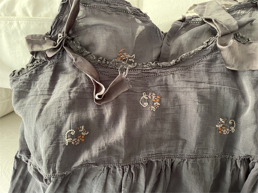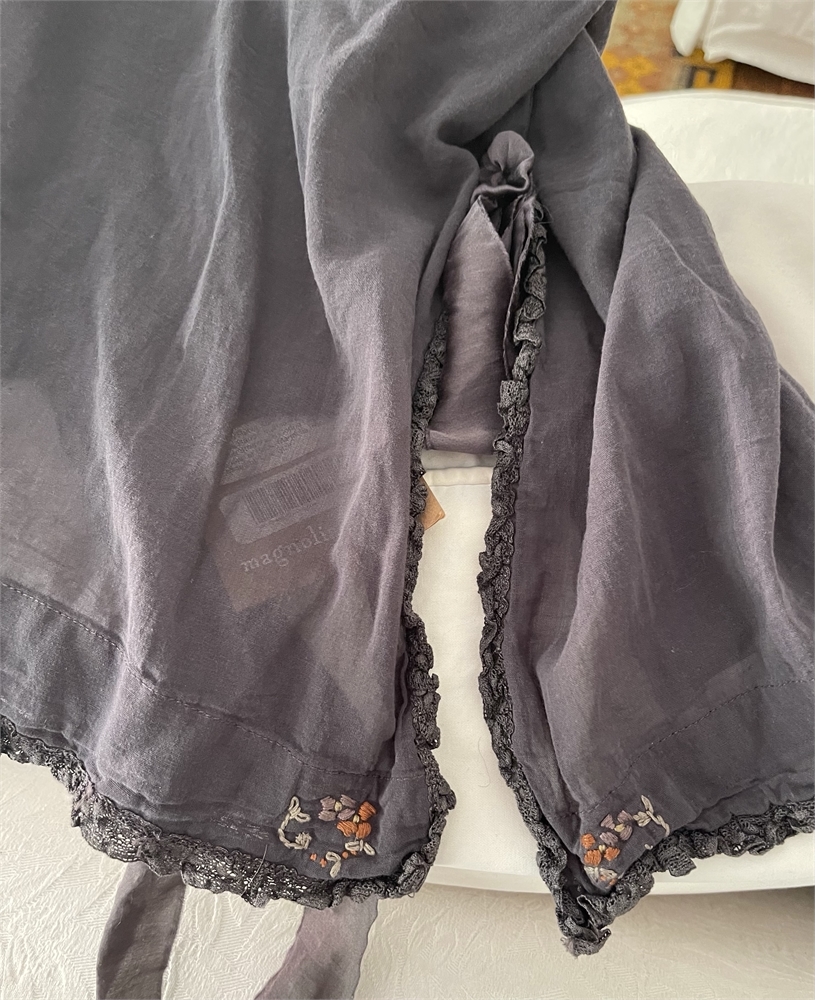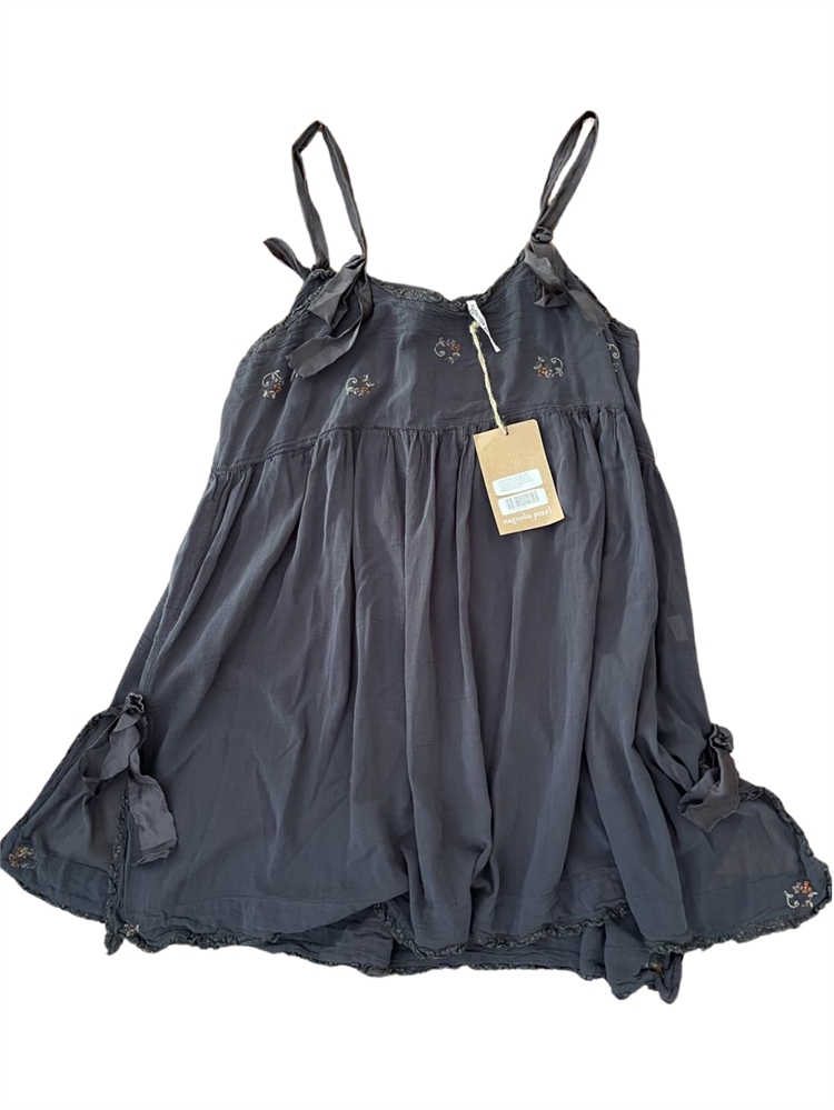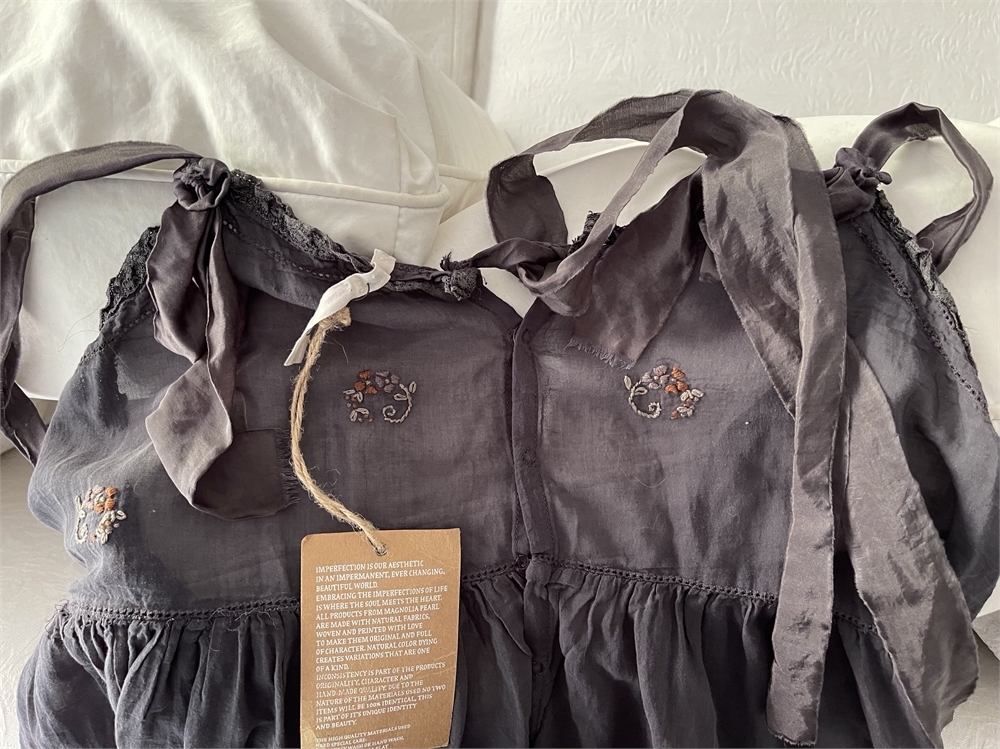 New With Tag - Slip 92 Cotton Rubia Kate Slip with Floral Hand Embroidery, Silk Satin Straps and Cotton Lace. Snaps at Back. Has 2 side small openings at hem with silk ribbon and embroidery detail. Magnolia Pearl Midnight. One Size. Approximate Measurements: Width across bodice (underarm to underarm): 22 inches Length from top of strap: 37 inches Fabric content: 75% silk