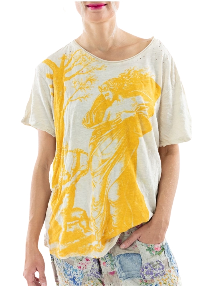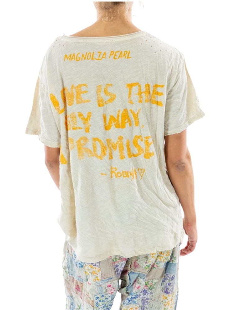 Hand-Distressing (small holes) at Shoulders, Neckline & Hems